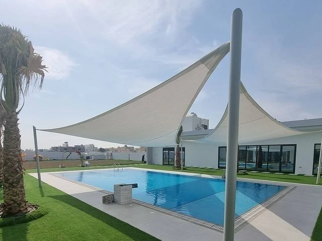 - مظلات حدائق، مسابح، جلسات خارجية، مدارس، وأسواق