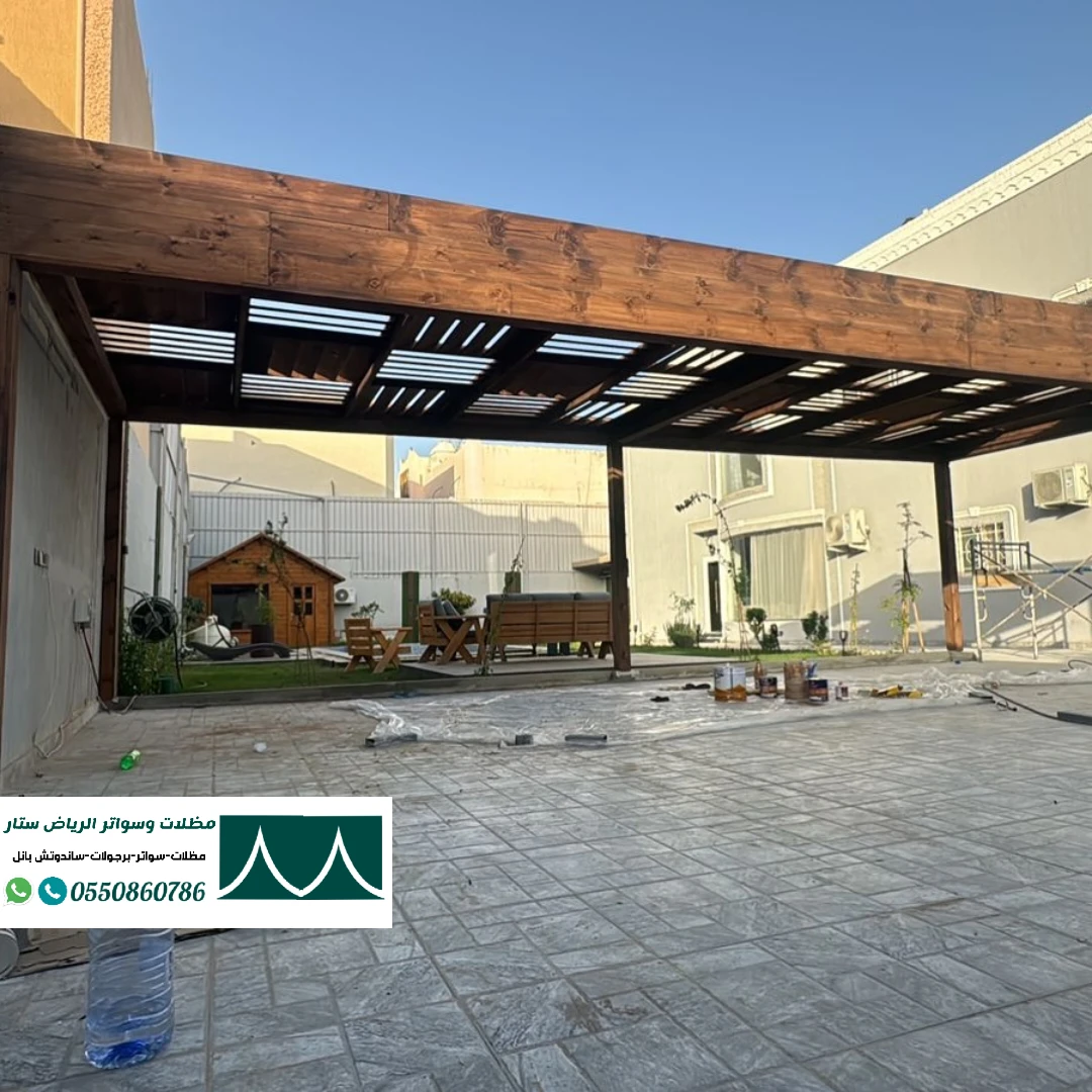 مظلات جلسات خشب بمواصفات حديثة في الرياض. تضفي مظلات الجلسات الخشبية لمسة طبيعية وجمالية على المكان، وتصنع من أخشاب معالجة لتكون مقاومة للعوامل الجوية والحشرات. جمالية ورونق طبيعي، خيارات تصميم متعددة تناسب البيئات المختلفة، تحتاج إلى صيانة دورية لضمان الحفاظ على جودتها.