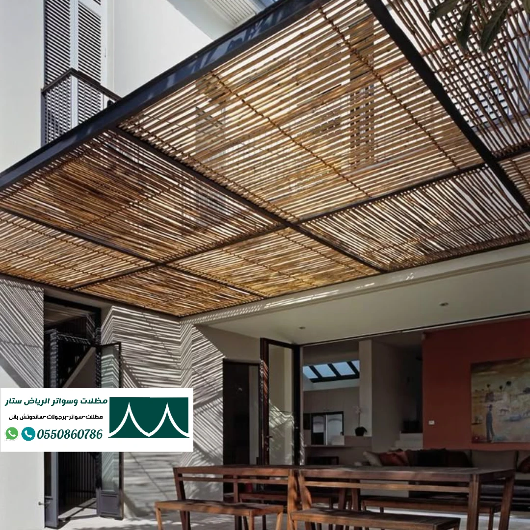 | مظلات خشبية أو بديل الخشب | مظهر طبيعي، مقاومة للحرارة والرطوبة |