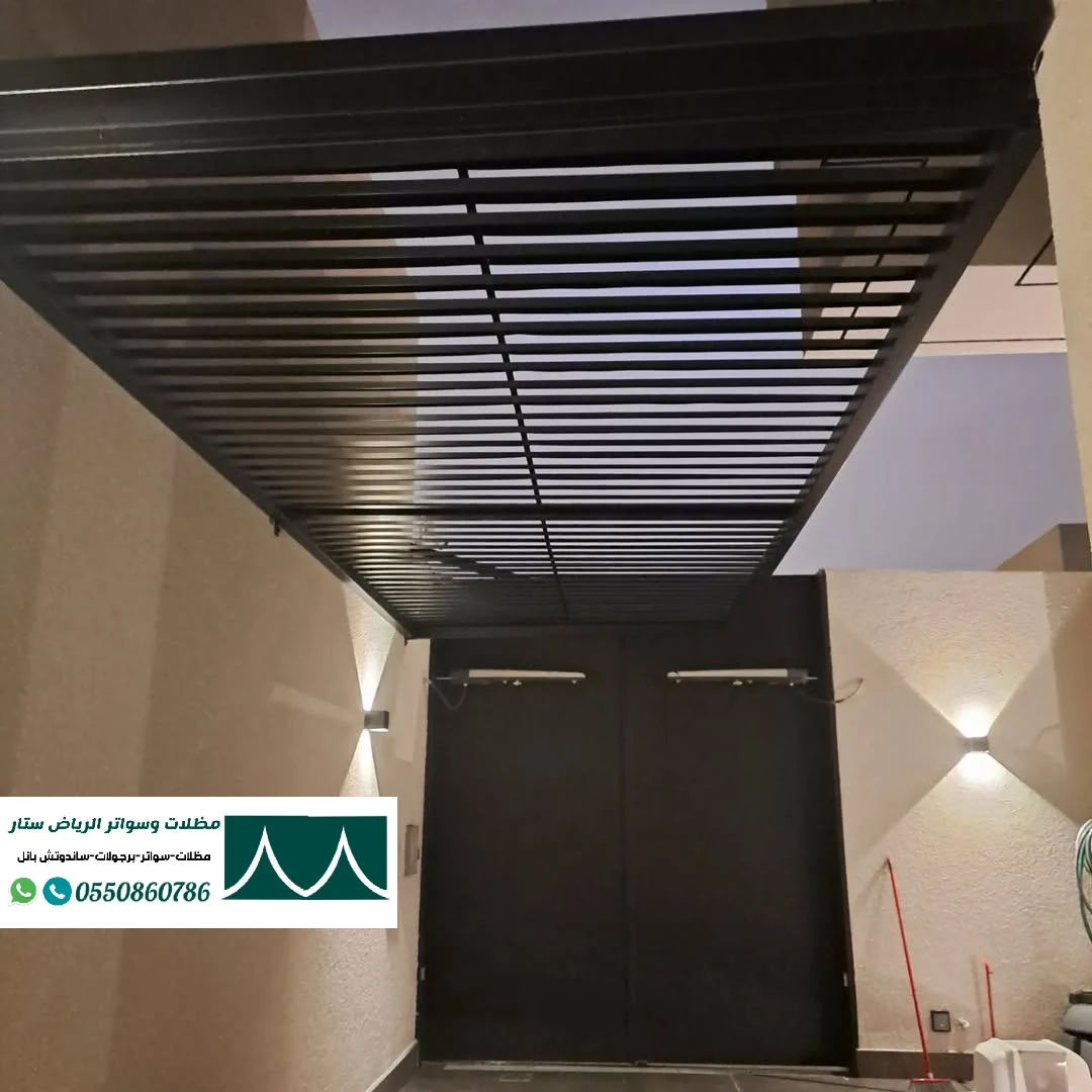 - مظلات حديد مودرن بخطوط هندسية بسيطة.