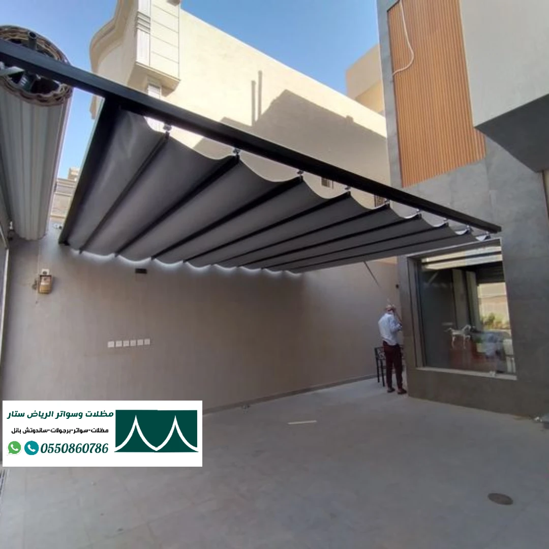 نعمل على تركيب مظلات متحركة سحب يدوي بأعلى مستويات الجودة والدقة والسرعة. تتميز هذه المظلات بجودتها العالية حيث تصنع من أفضل الأقمشة وتركب بدقة واحترافية عالية لتوفير الحماية والظل المثالي لسيارتك من أشعة الشمس والأمطار والعوامل الجوية الأخرى. تعمل فرق العمل بكفاءة واحترافية لضمان رضاكم التام. تركيب مظلات سيارات متحركة يدوي داخل وخارج أحواش المنازل والفلل. نحن نهتم بتوفير خدمة عالية الجودة لعملائنا ونسعى جاهدين لتلبية احتياجاتكم وتوفير الراحة والحماية اللازمة لسيارتكم في جميع الأوقات.