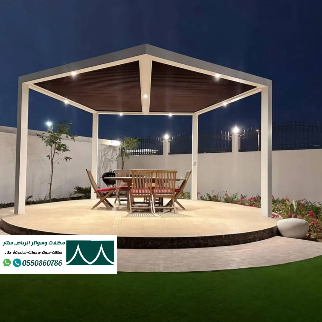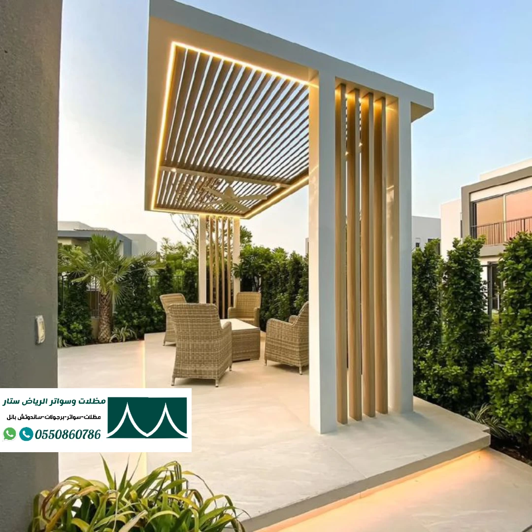 نوفر مظلات جلسات خارجية وحدائق منزلية في الرياض بتصاميم أنيقة وجودة عالية مقاومة للحرارة والمطر. استمتع بحديقتك في كل الفصول بأسعار منافسة.