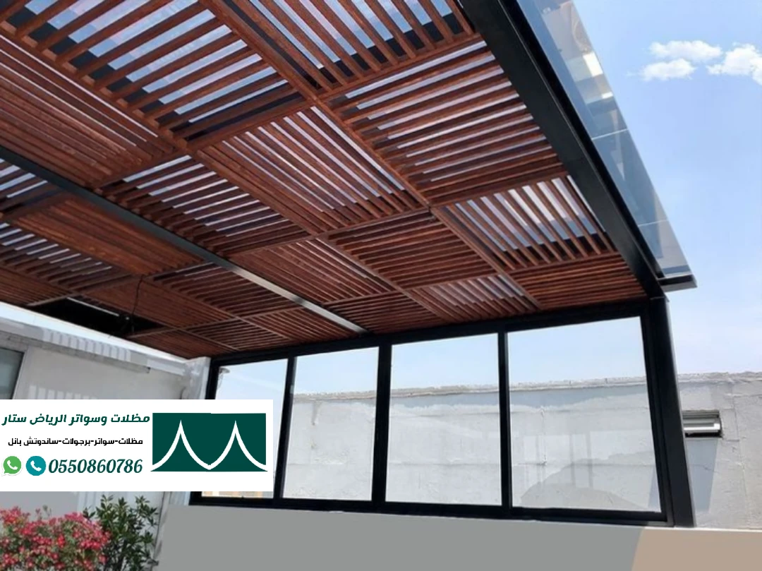 | مظلات خشبية أو بديل الخشب | مظهر طبيعي، مقاومة للحرارة والرطوبة |